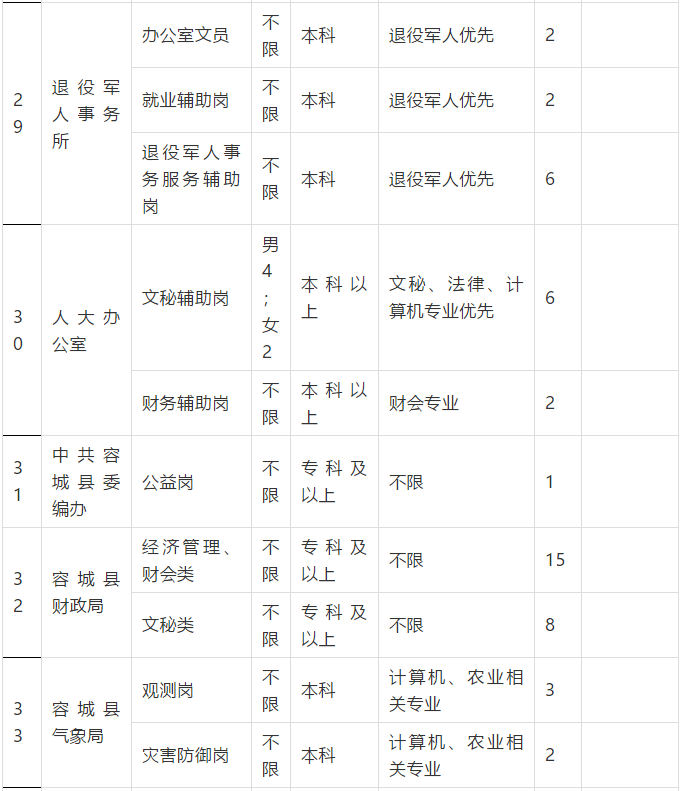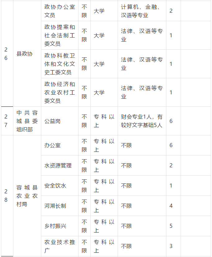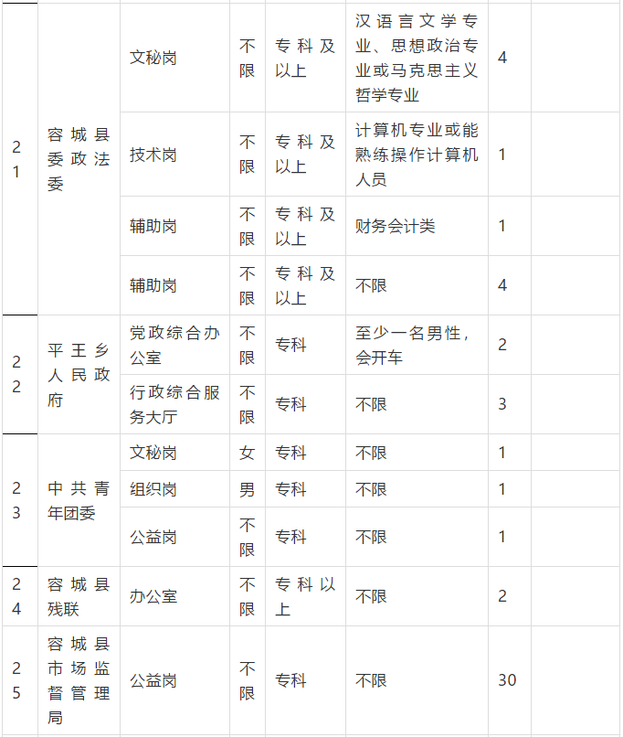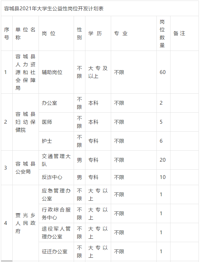 2.具備容城縣2021年大學生公益性崗位開發計劃表崗位要求條件;