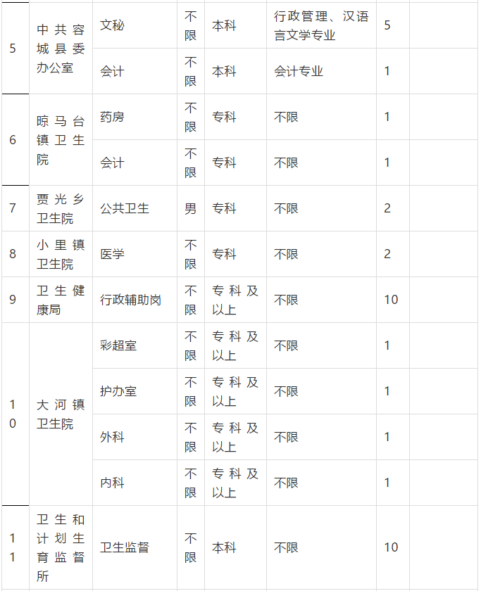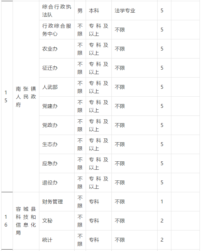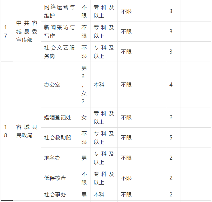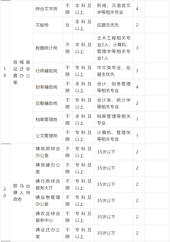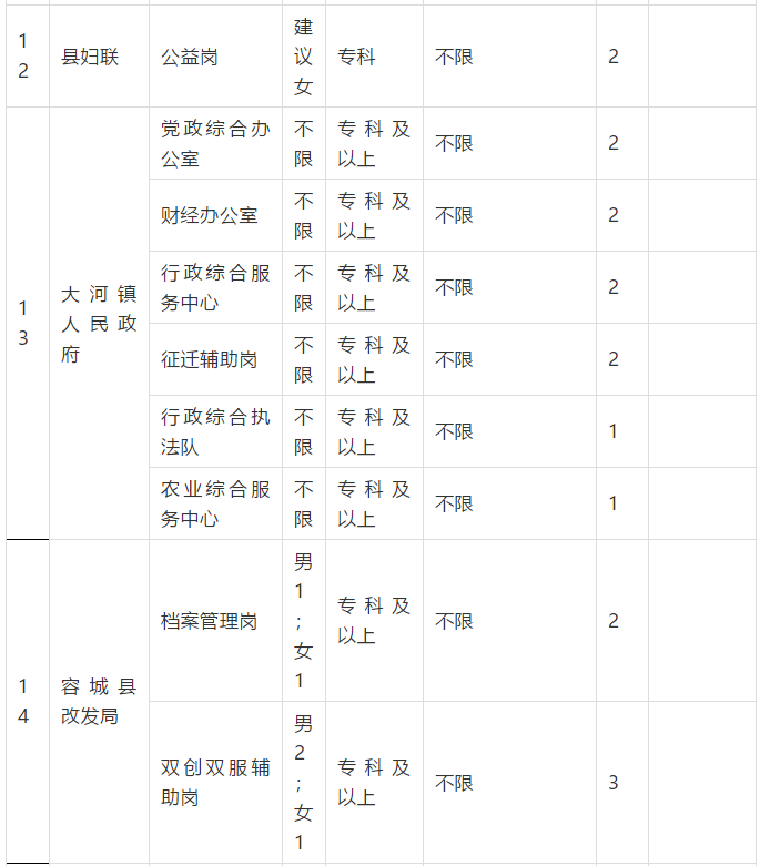 容城縣戶籍或者擁有容城縣居住證的常住人口,畢業五年內、國家承認學歷的全日制(含民辦全日制)大專及以上學歷的未就業畢業生,自愿從事公益性崗位工作,且滿足以下條件: