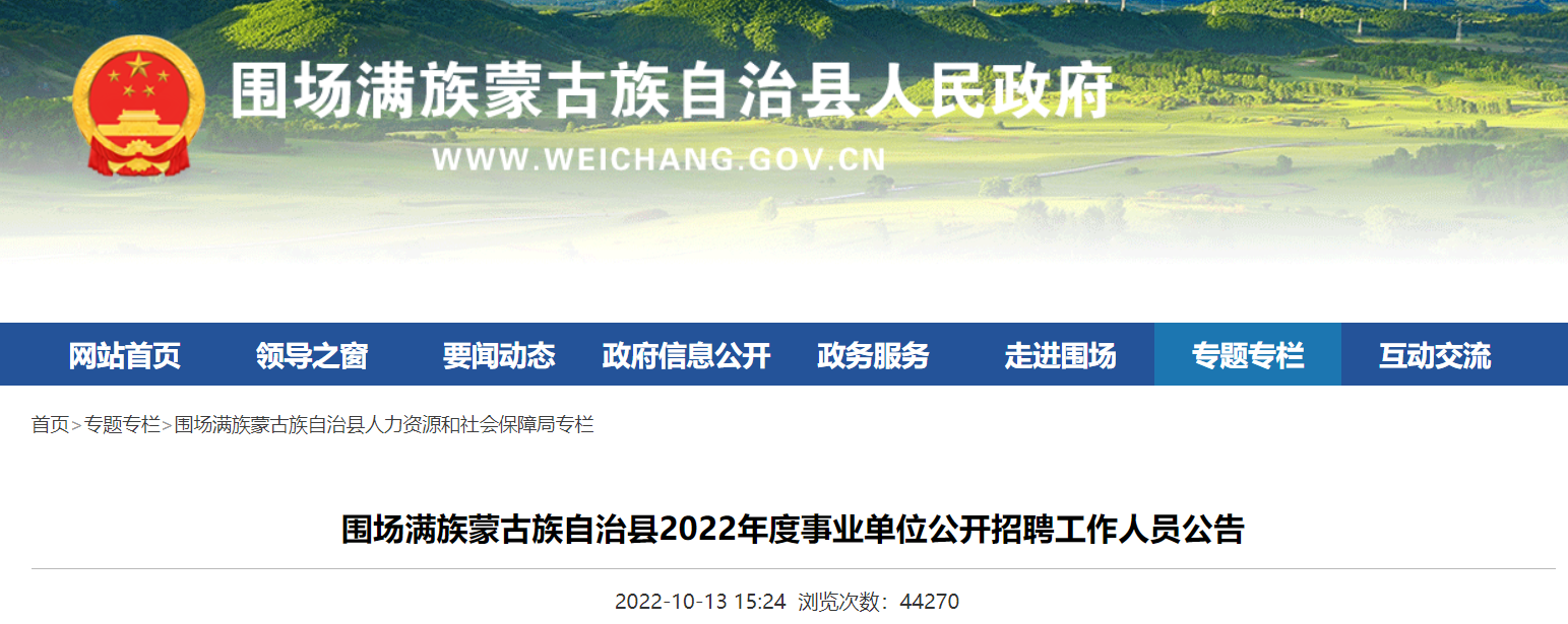 (2)圍場(chǎng)滿族蒙古族自治縣公開(kāi)招聘事業(yè)單位工作人員報(bào)名網(wǎng)址(圍場(chǎng)滿族蒙古族自治縣人民政府網(wǎng)站人社局專欄https://www.weichang.gov.cn/col/col3088/index.html)