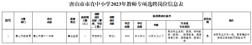 原標題:河北省唐山市第十一中學2023年教師專項選聘公告