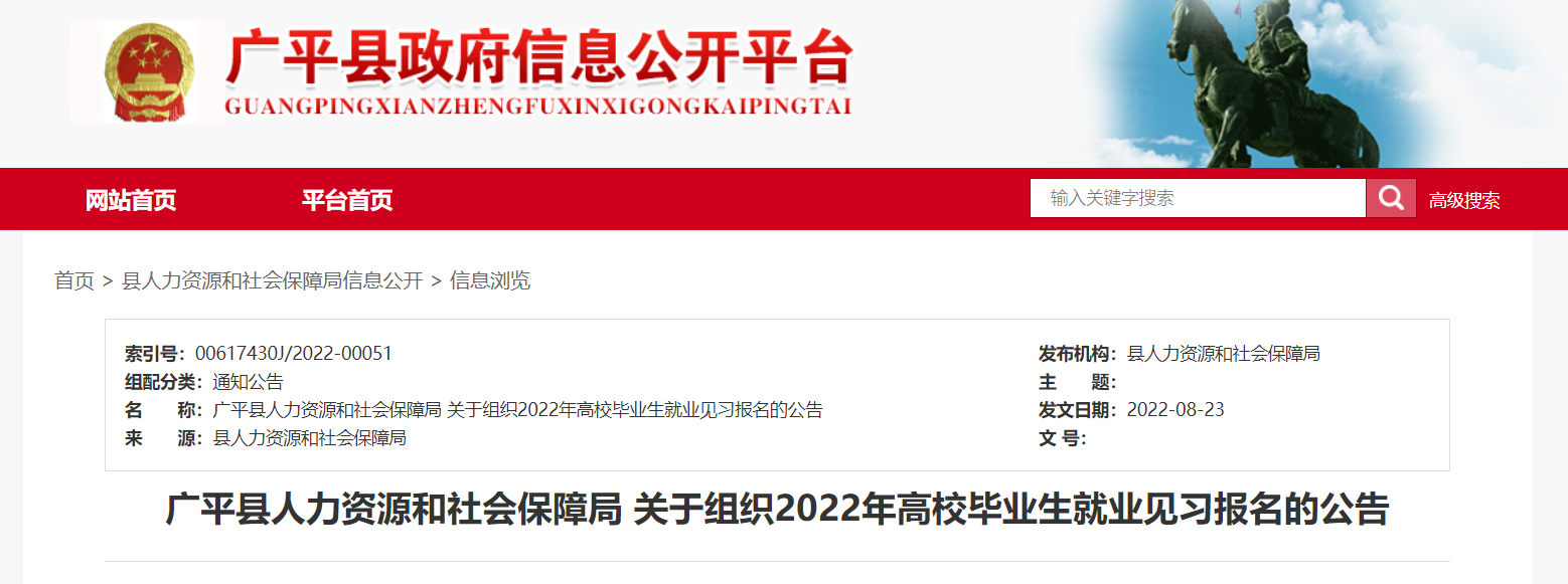 根據畢業(yè)生報名情況由廣平縣勞動就業(yè)服務中心負責分配,并組織見習單位和見習人員對接,上崗時間為2022年9月1日。