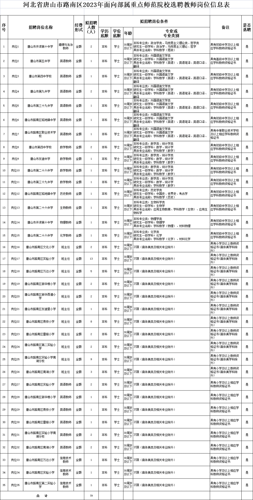 選聘崗位所需要的具體條件按《河北省唐山市路南區2023年面向部屬重點師范院校選聘教師崗位信息表》要求確定。